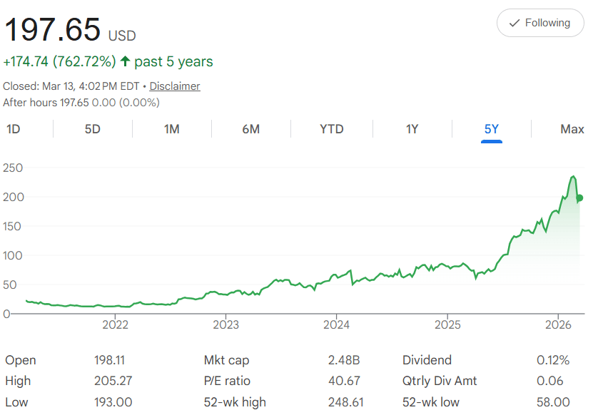 The 52-week high reached $248.61, well above the current price, proving the stock has already delivered big surges during strong phases.